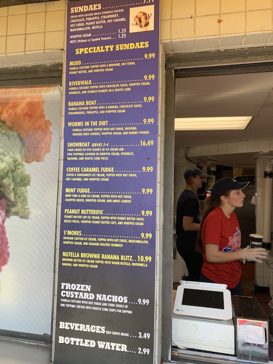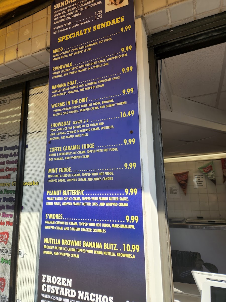 Vanilla custard topped with a brownie, hot fudge, peanut butter and whipped cream